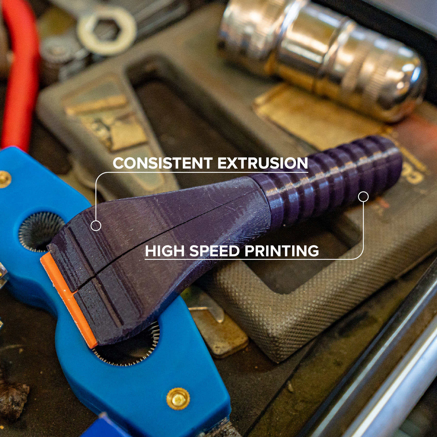 Dankzij de vernieuwde materiaalformule is Polymaker PETG geschikt voor zeer hoge printsnelheden. Ook bij snel printen blijft de filamenttoevoer stabiel, wat het ideaal maakt voor efficiënt en betrouwbaar seriewerk.